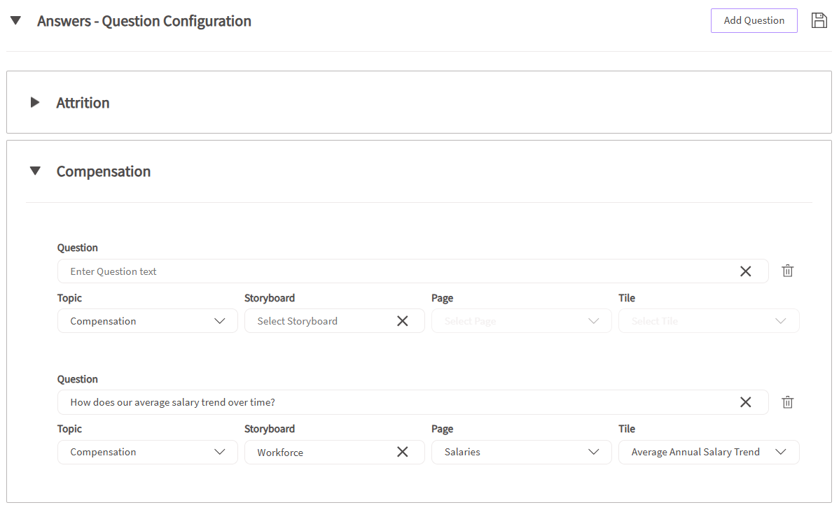 - Collapse or expand topics in the Question Configuration section for easier viewing and organization.