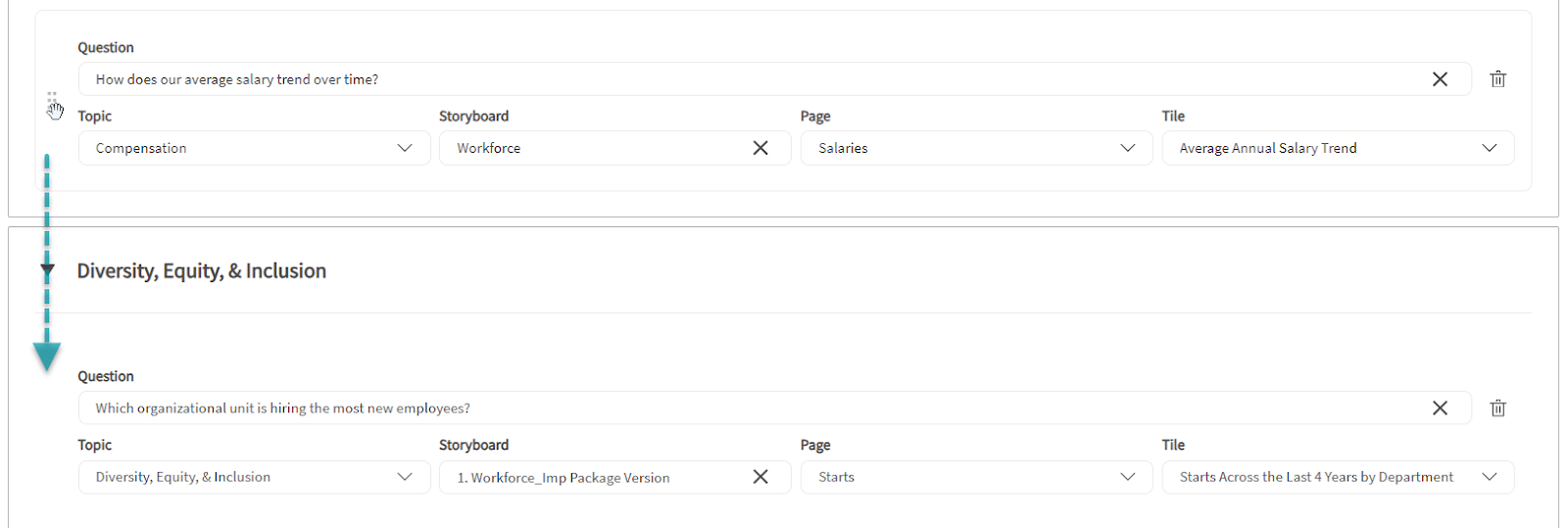 - To move a question to a different topic, drag it into the new topic section. The topic will automatically update to match its new location.
