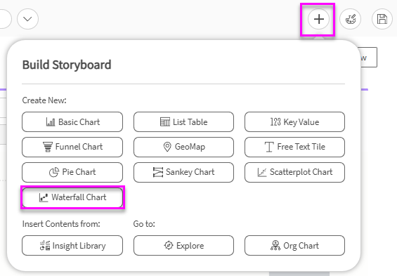 - To create a Waterfall Chart from within a Storyboard, click on the Edit [pencil] icon to enter Storyboard Modify Mode.