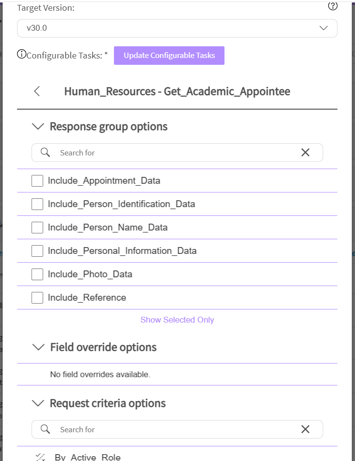 The configurable tasks represents data sets that Workday data source could retrieve from Workday once these tasks are enabled.