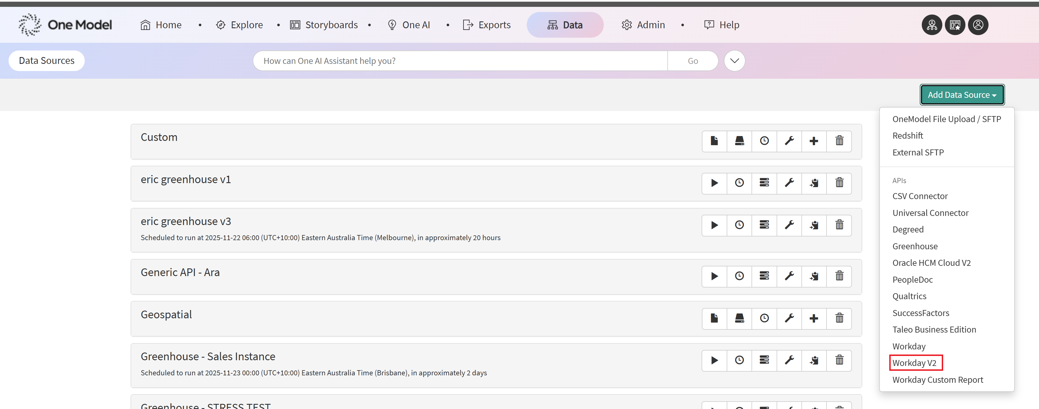 Configure Workday Data source in One Model