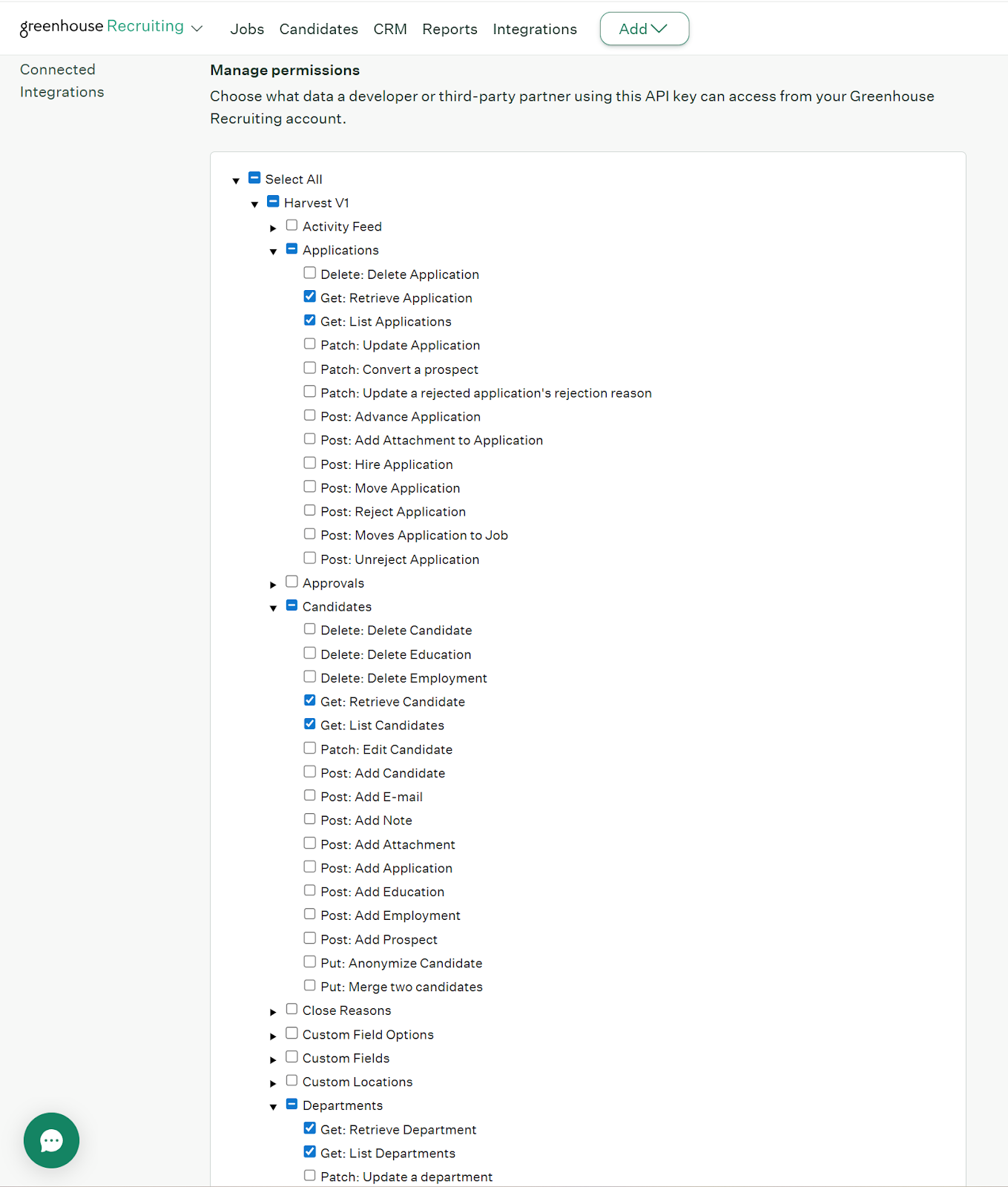 Please ensure you check the boxes for because the data source use these API end points to check the health of Greenhouse API