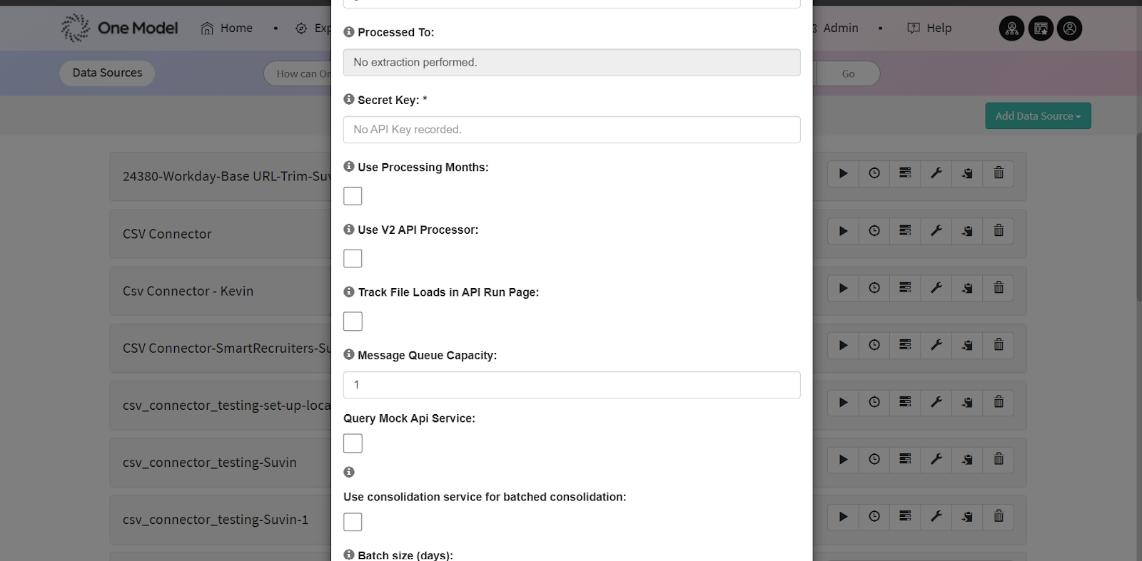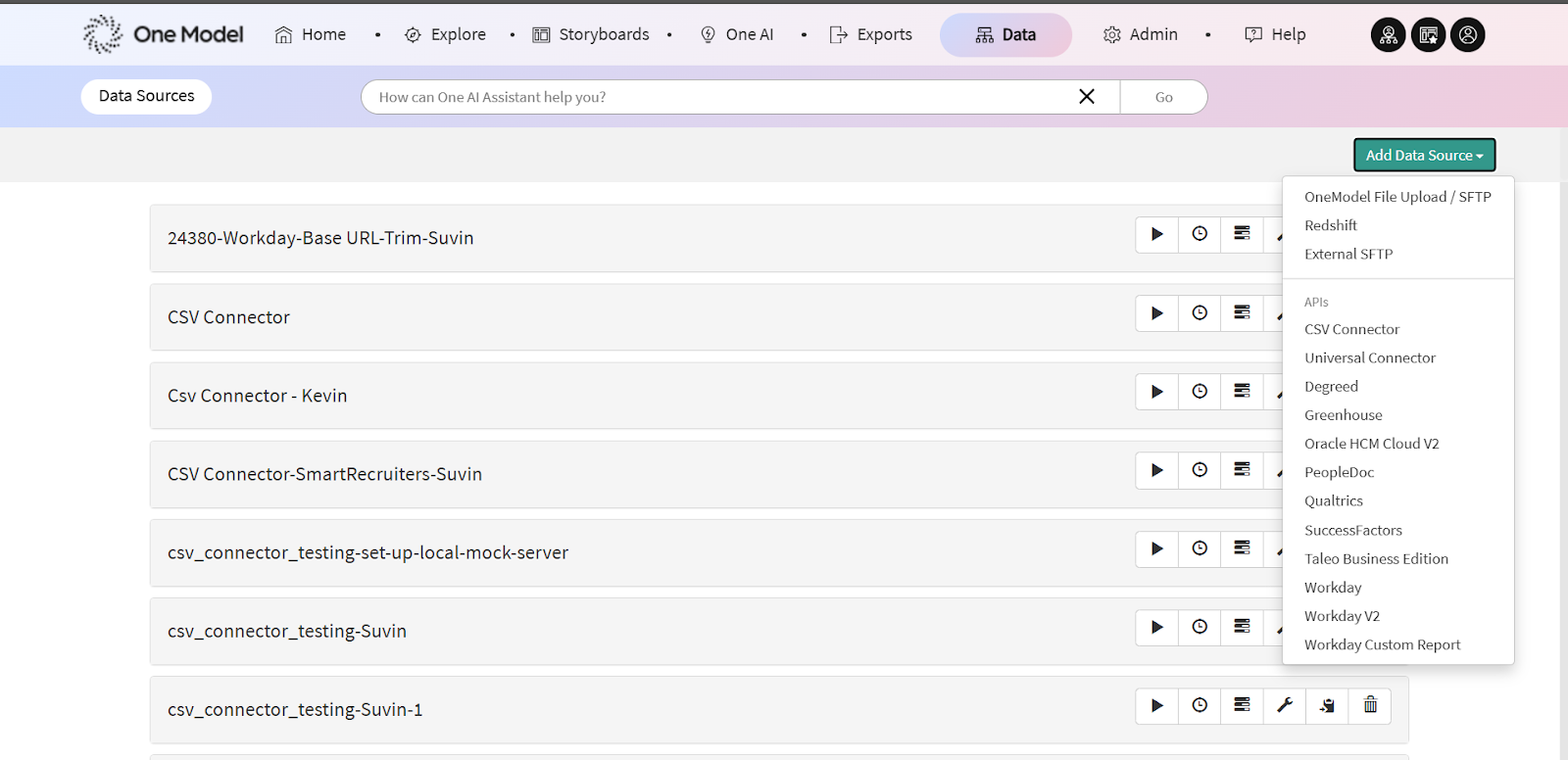 - Login to your One Model instance and go to Data>Data Sources>Add Data Source.