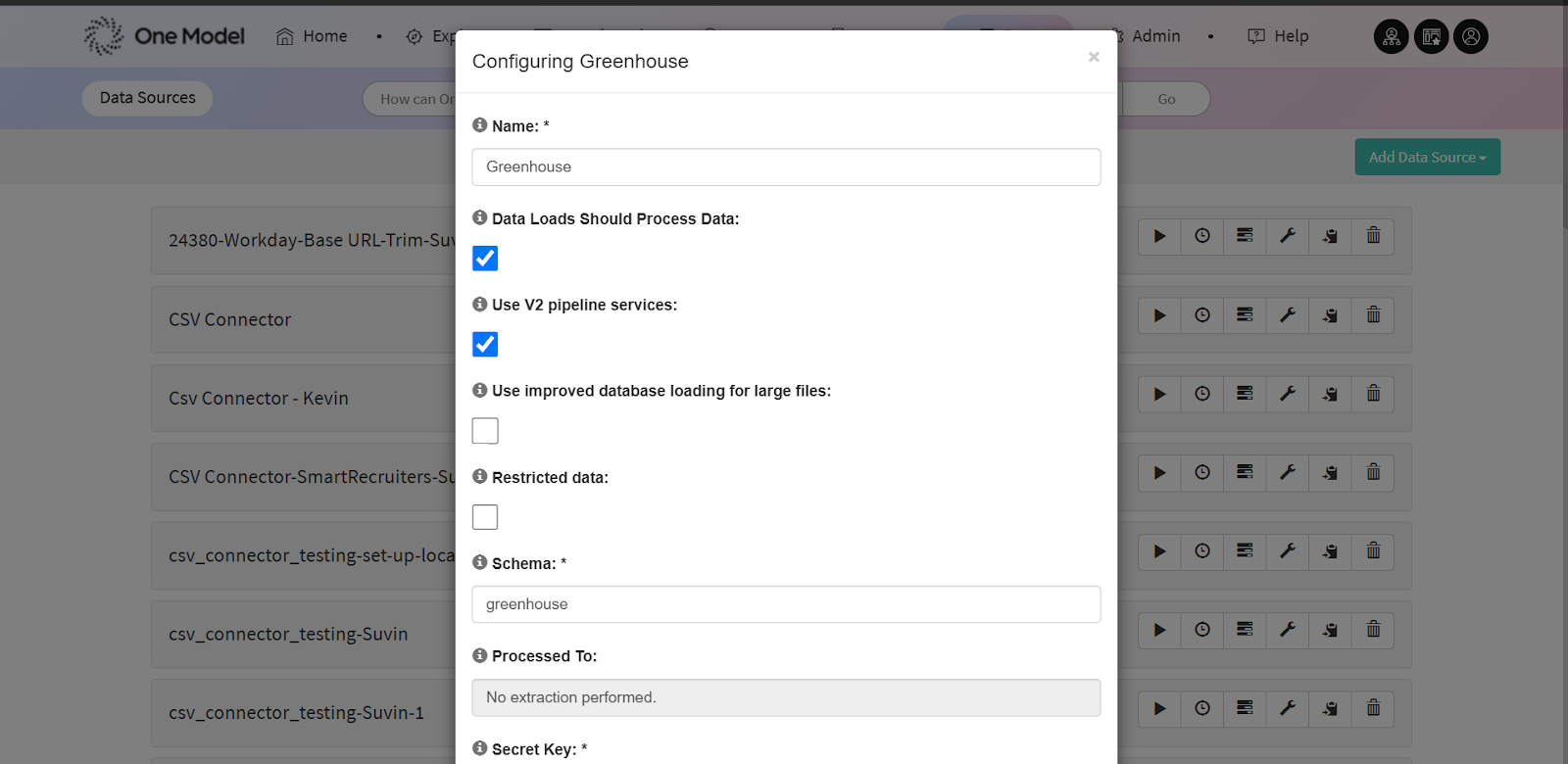 2. Setup Greenhouse Data Source at One Model
