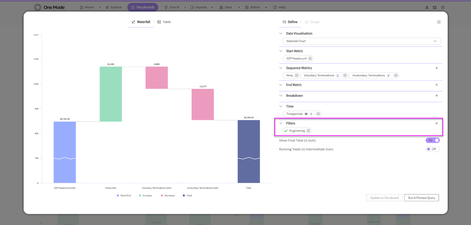 - We've made it faster and easier to apply filters to your Waterfall Charts in the Define tab. Now, when you select a dimension to filter by, the node selection panel will automatically open, saving you an extra click. And instead of the generic filter chip, the applied filter is now displayed (e.g., "Female"), giving you an at-a-glance view of all filters applied (ref 25981)
