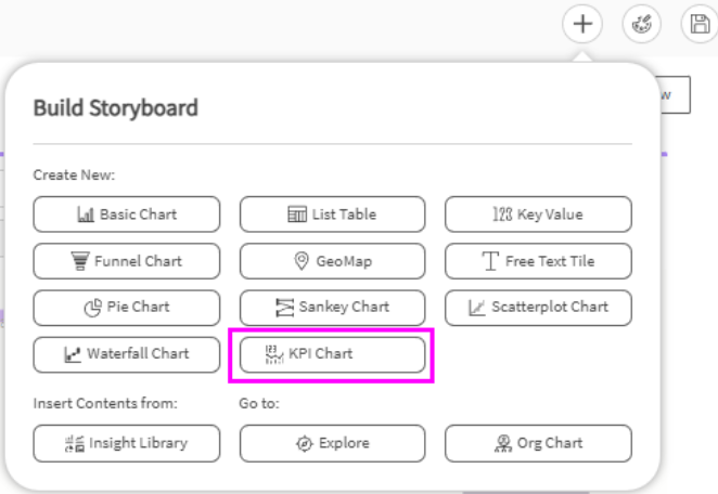 Before diving into creating your KPI Chart, it's beneficial to be familiar with the fundamentals of building basic charts or tables. For a refresher, please consult our guides on Creating basic charts and tables and Define (Explore in Storyboards) guide.