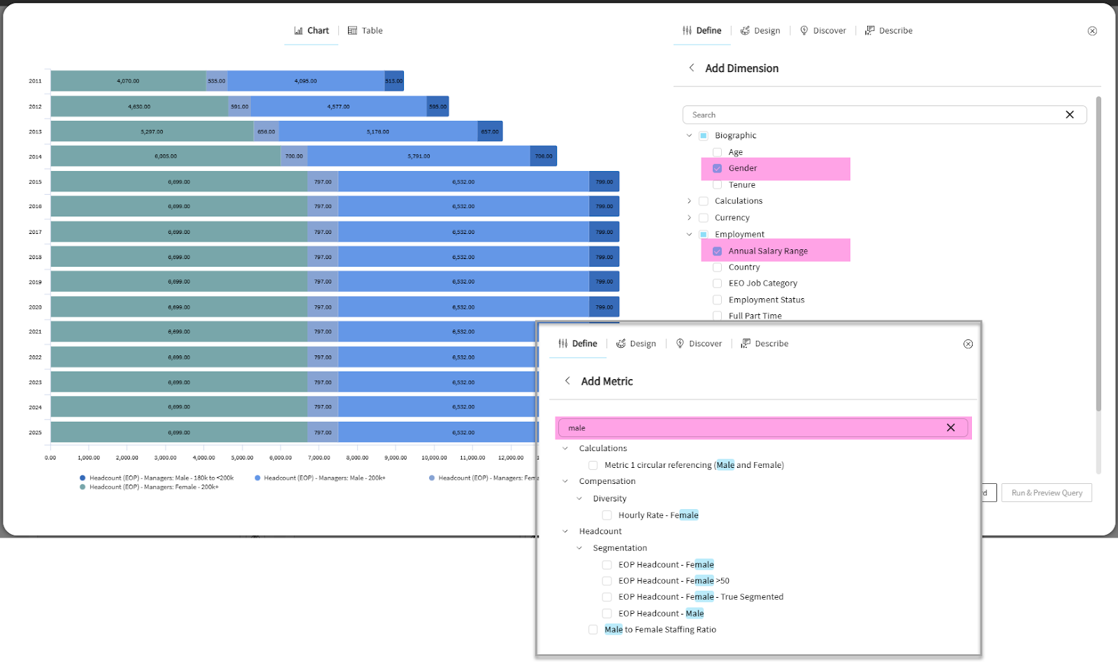 - An update for our Storyboard designers - You can now multi-select metrics, dimensions, and columns in the Define panel, plus we have introduced a new search feature for dimension nodes so you no longer have to navigate complex hierarchies. This enhancement eliminates repetitive panel openings, making your chart creation workflow more efficient and intuitive.