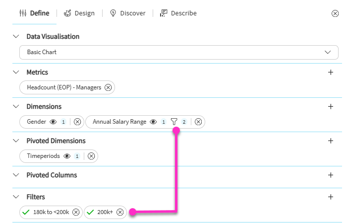 - We're happy to announce that the improved filter experience you recently saw in Waterfall charts has now been rolled out to all other chart types in the Define tab. All chart types are now supported, with Scatterplots coming next.
