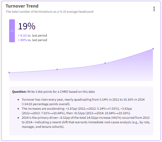 - For users with access to One AI Assistant features, the KPI Chart is fully integrated with Auto Insights and Custom Insights (Analyze). This allows you to generate AI-driven commentary and analysis directly on your KPI tile, providing deep context with minimal effort.