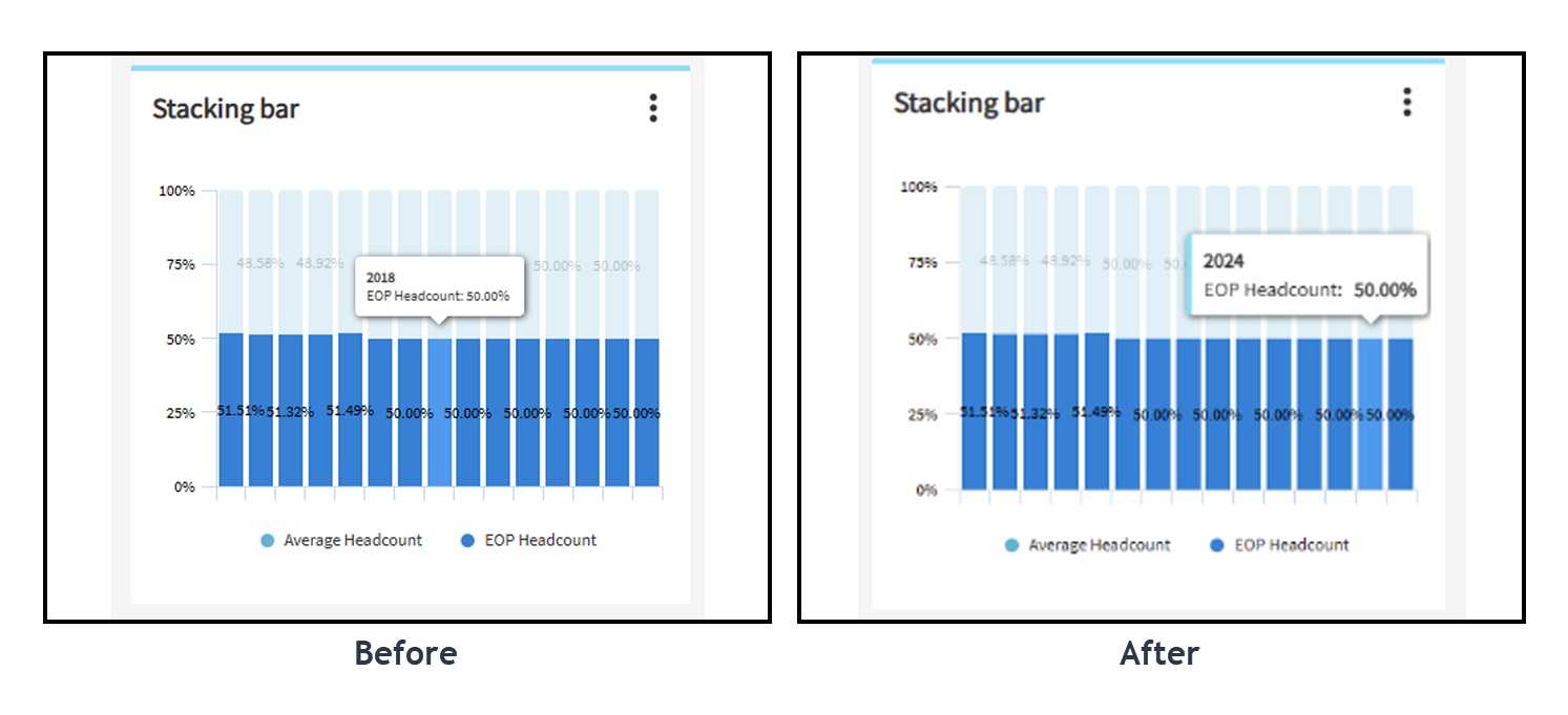 - We resolved an issue where selecting a deep hierarchical dimension node (like a Level 4 Org Unit) via the search bar resulted in an incorrect "Unknown" value showing in the filter chip on the Define panel. Selected hierarchical filters now display the correct node name (ref 26394