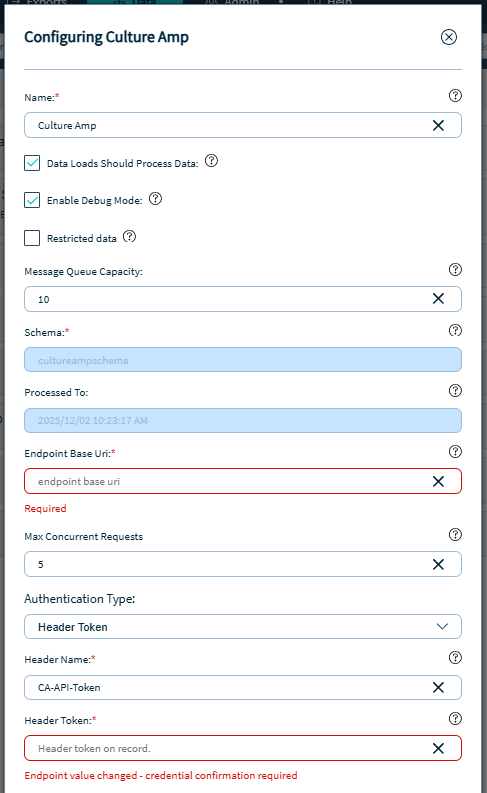 Find the Base URI and information on obtaining the Header Token by reviewing the official Culture Amp documentation:https://support.cultureamp.com/en/articles/9232738-reporting-api#h_cd9c25581a
