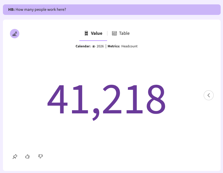 Prompt routing now shows multiple options: One AI Assistant now offers multiple routing options in AI Mode when a prompt could apply to more than one capability. For example, typing “headcount” might mean you want a visualization (like a key value tile), Storyboards related to headcount, or an Answer about headcount. Instead of guessing, the Assistant will present the relevant options so you can choose the right one. This also prevents Answers from overpowering prompts that contain matching keywords. (ref ON-4128)