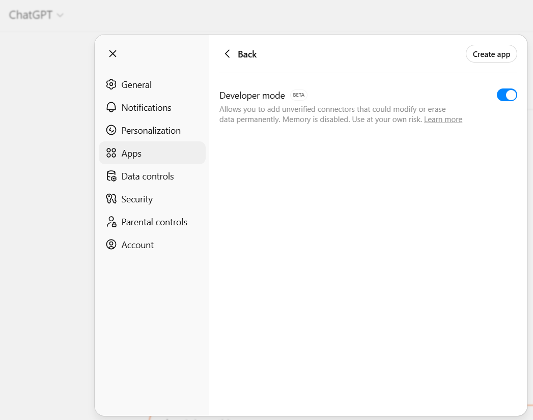 Step 2: Enable Developer Mode in ChatGPT
