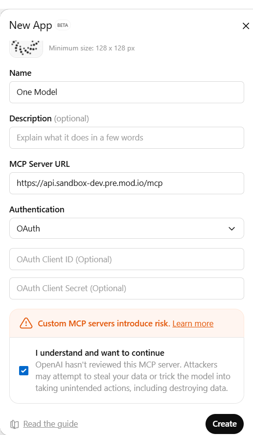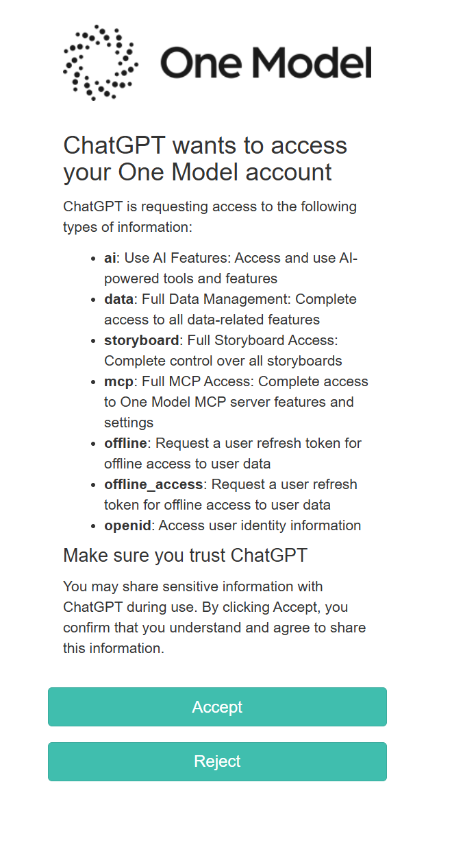 This guide explains how to connect ChatGPT to One Model using the Model Context Protocol (MCP).