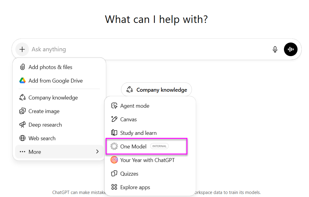 The One Model app should now appear as a selectable tool in ChatGPT.