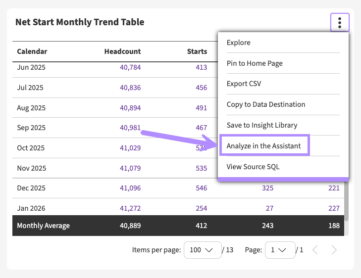 Analyze Storyboard tiles in One AI Assistant – Users can now send any Storyboard tile straight to One AI Assistant for analysis via a new “Analyze in the Assistant” option in the tile’s 3-dots menu. This opens the Assistant, automatically selects Analyze mode, and adds the tile’s table or chart to the current thread (or starts a new one).