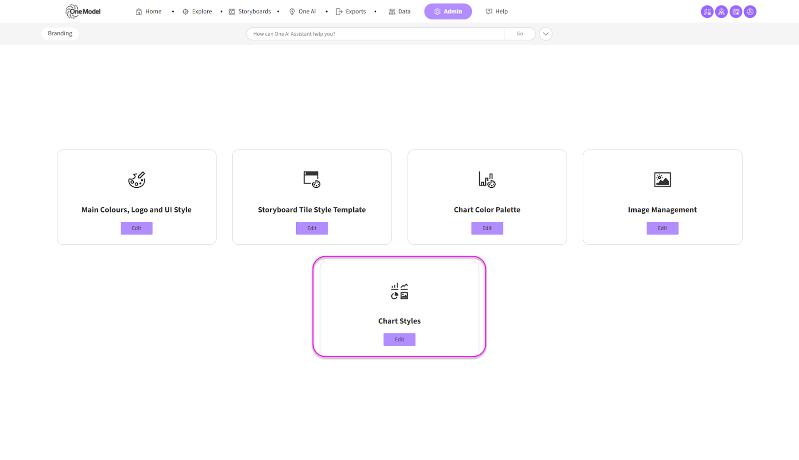To manage this setting, navigate to Admin > Branding > Chart Styles and click Edit.