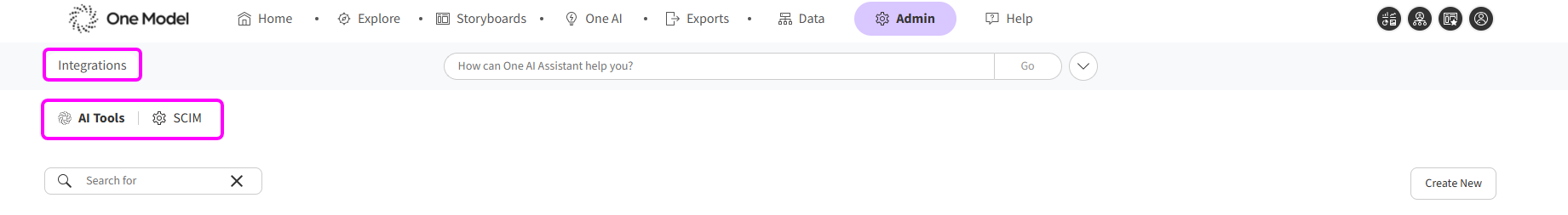 We have a new Integrations tab under Admin > Integrations where you can connect your AI Tools or System for Cross-domain Identity Management (SCIM).