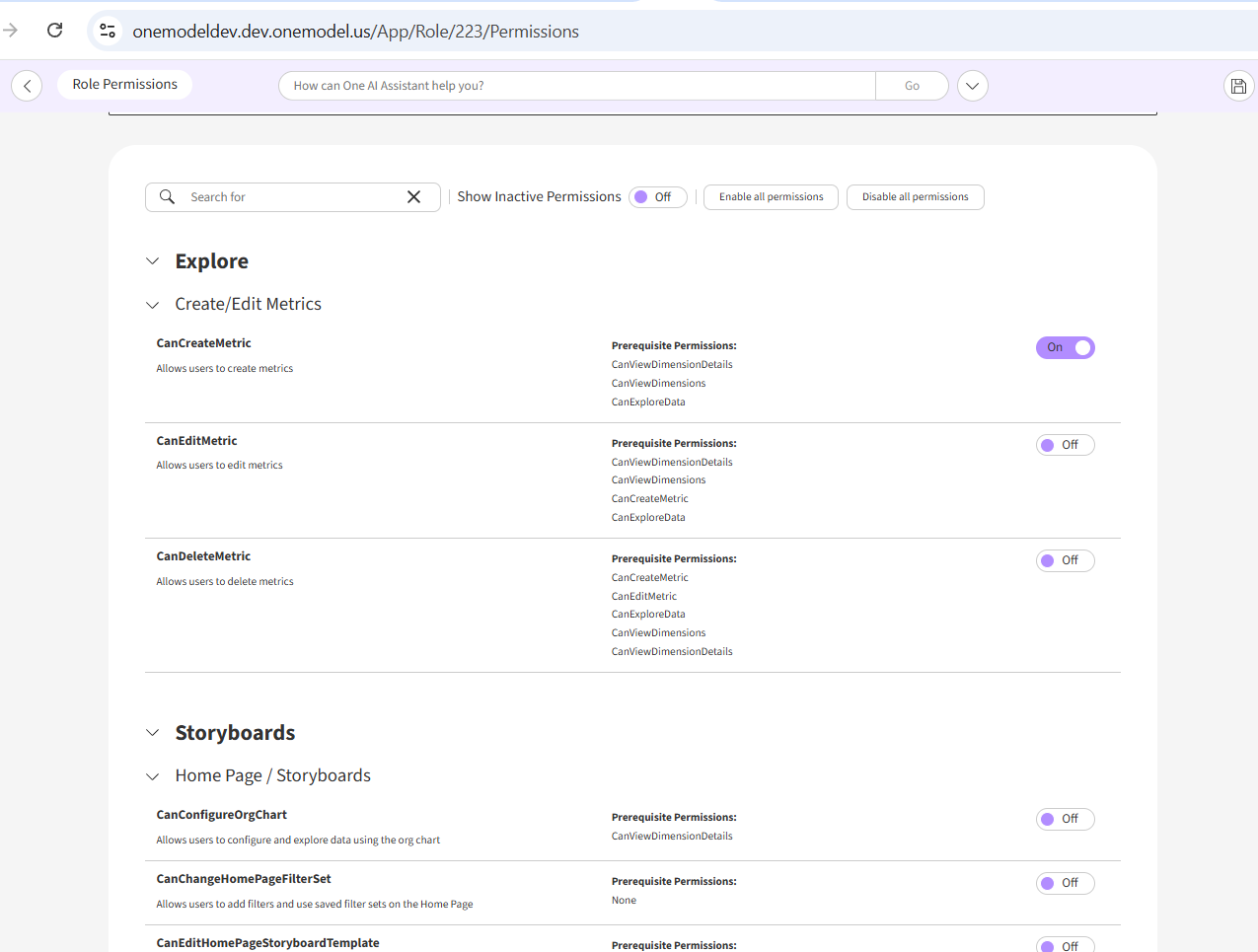 If, for some reason, you need access to the previous version of the page, you can do so by changing the end of the web address (URL) to /App/Role/[ROLEID]/Permissions. Note that this legacy path will be removed in a future release. (ref 27473).