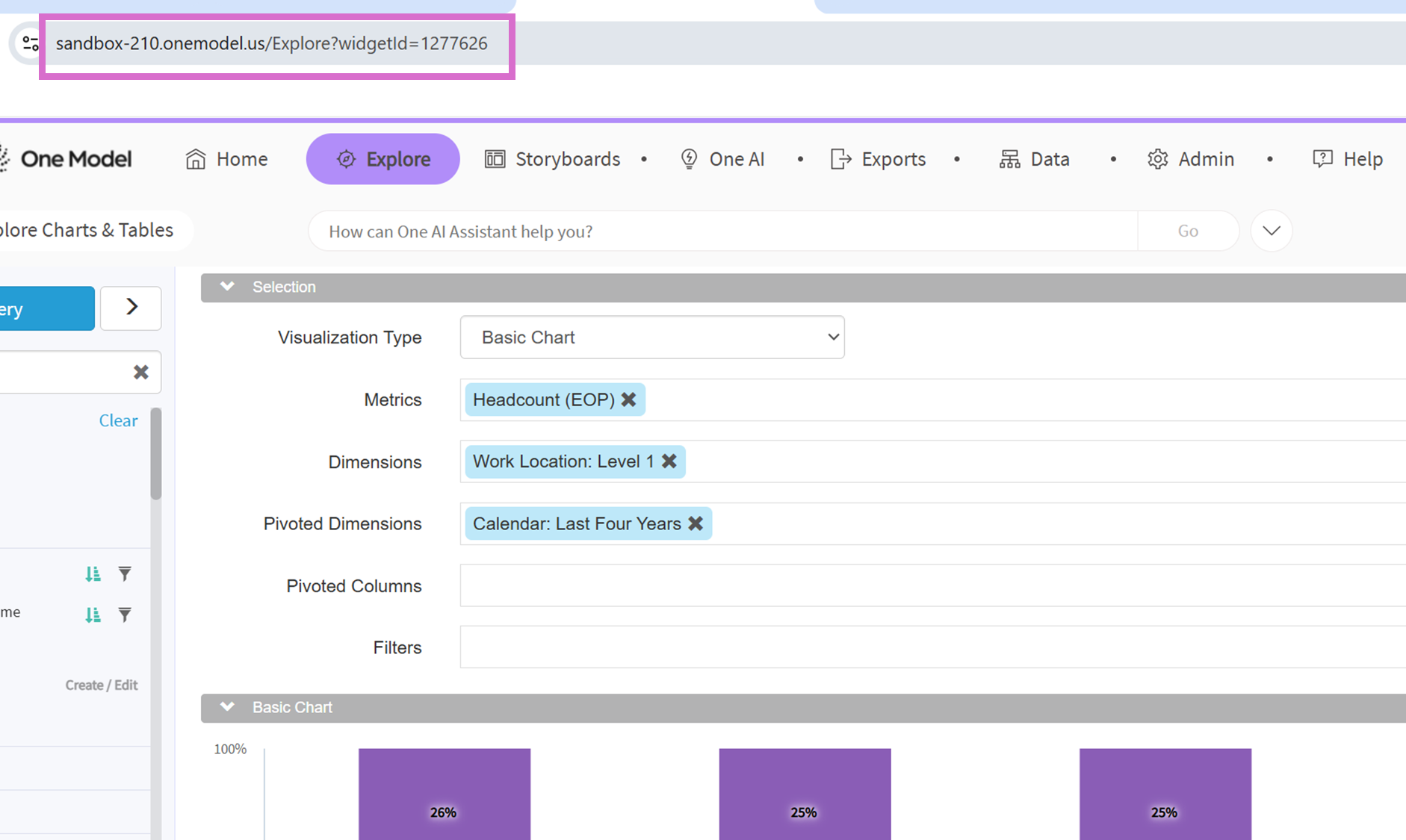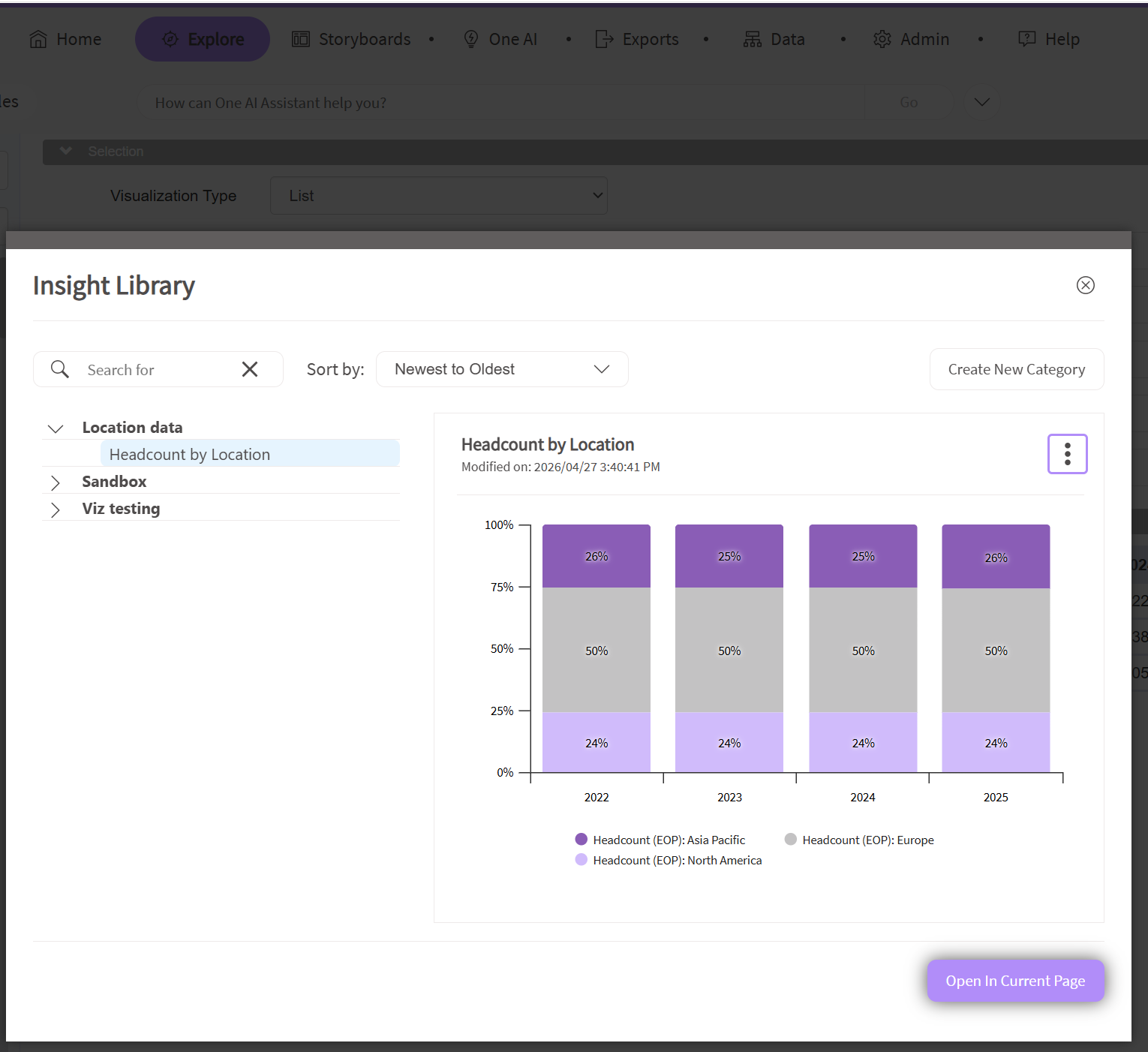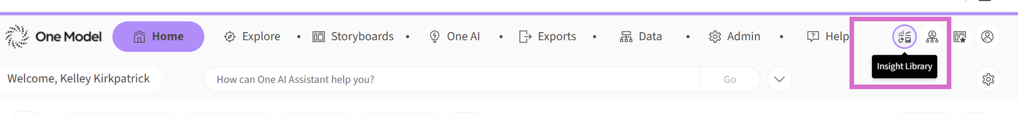 If you would like to share a saved Insight from your personal Insight Library with another One Model user, please follow the below steps. Note, the user receiving the Insight link will need to have application access to Explore, and any relevant data access permissions.
