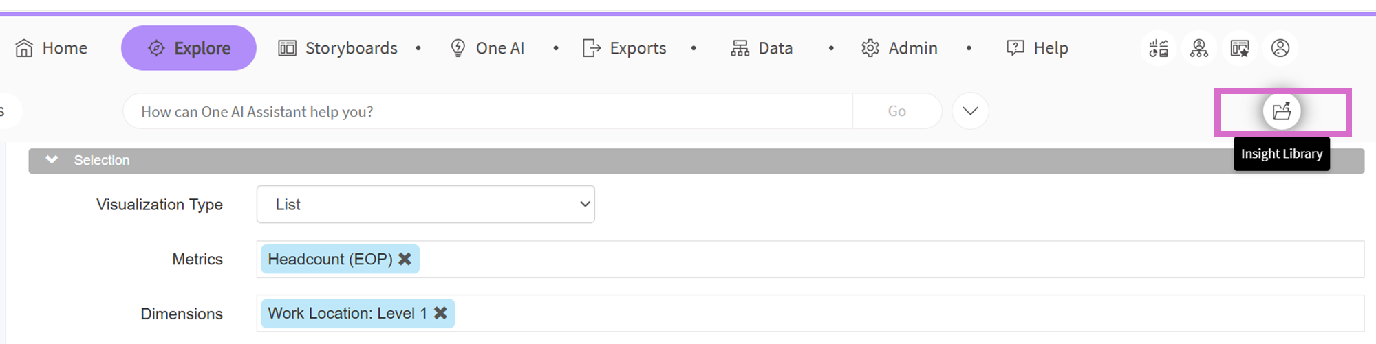 - Open Explore and click on the Insight Library icon