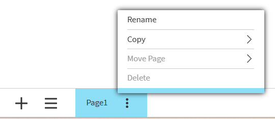 - You add pages by clicking on the + icon at the bottom left of the Storyboard and edit the page names and positions by clicking on the three dots at the end of each page tab.