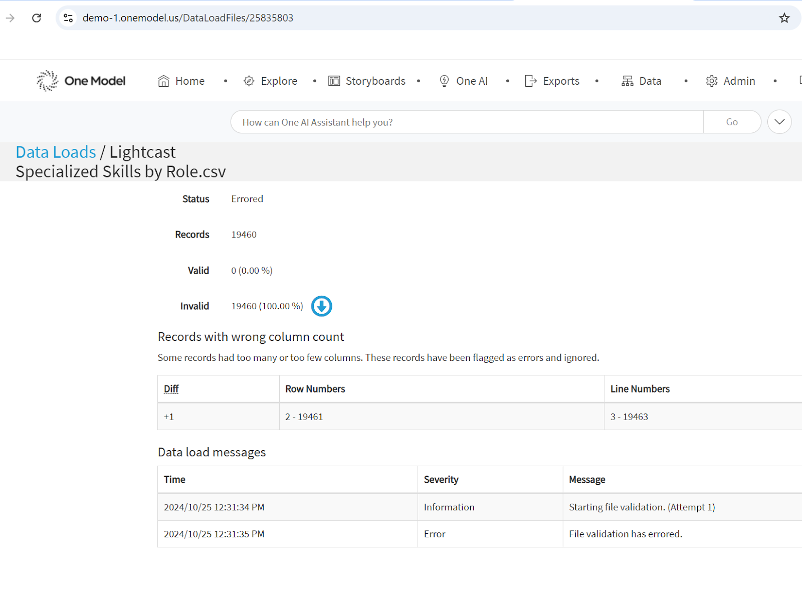 The downloaded file will include error details that can help identify issues preventing the load from completing successfully.