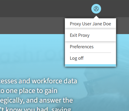 You’ll now see the site as if you were them. This means that you have access exactly as they have access, including any unpublished Storyboards. You know that you’re proxied in as someone because the proxy indicator in the upper right-hand corner will show in a different color and show Proxy User.