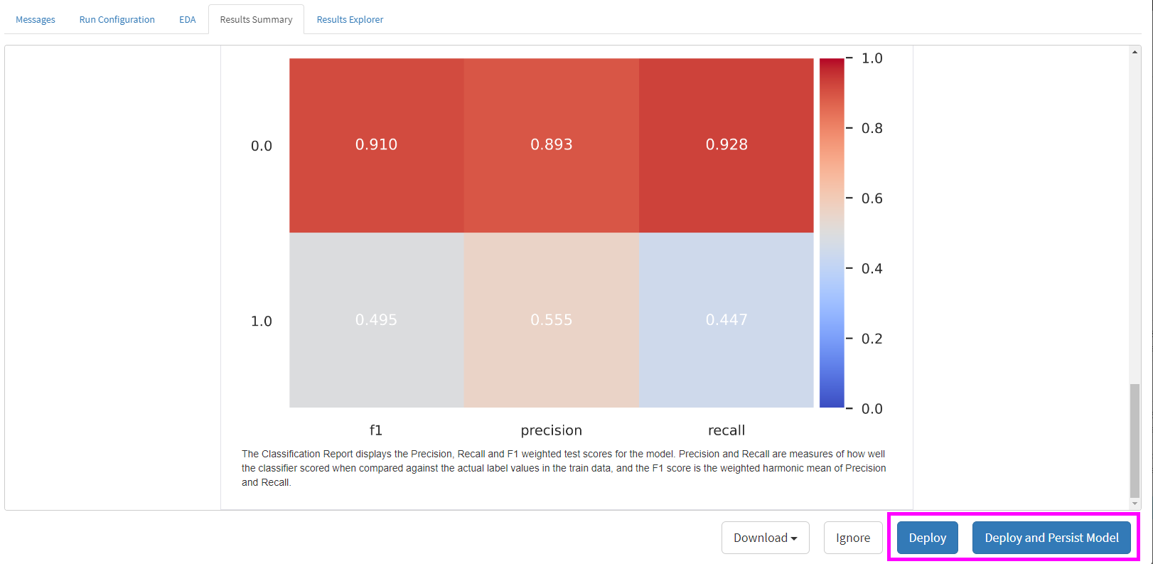 Deploy or Deploy and Persist ML Models from the Results Summary