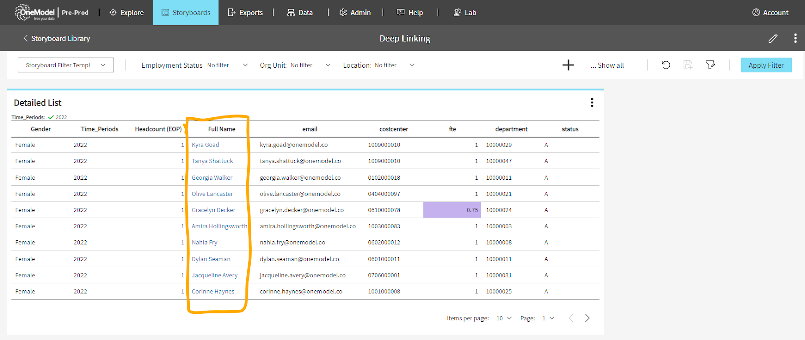 An exciting new feature we are delivering in this release is the ability to configure specific data elements within One Model to include a dynamic hyperlink. The new deep linking feature is available within Storyboard tables and in the drill-through table from charts and tables within Storyboards.