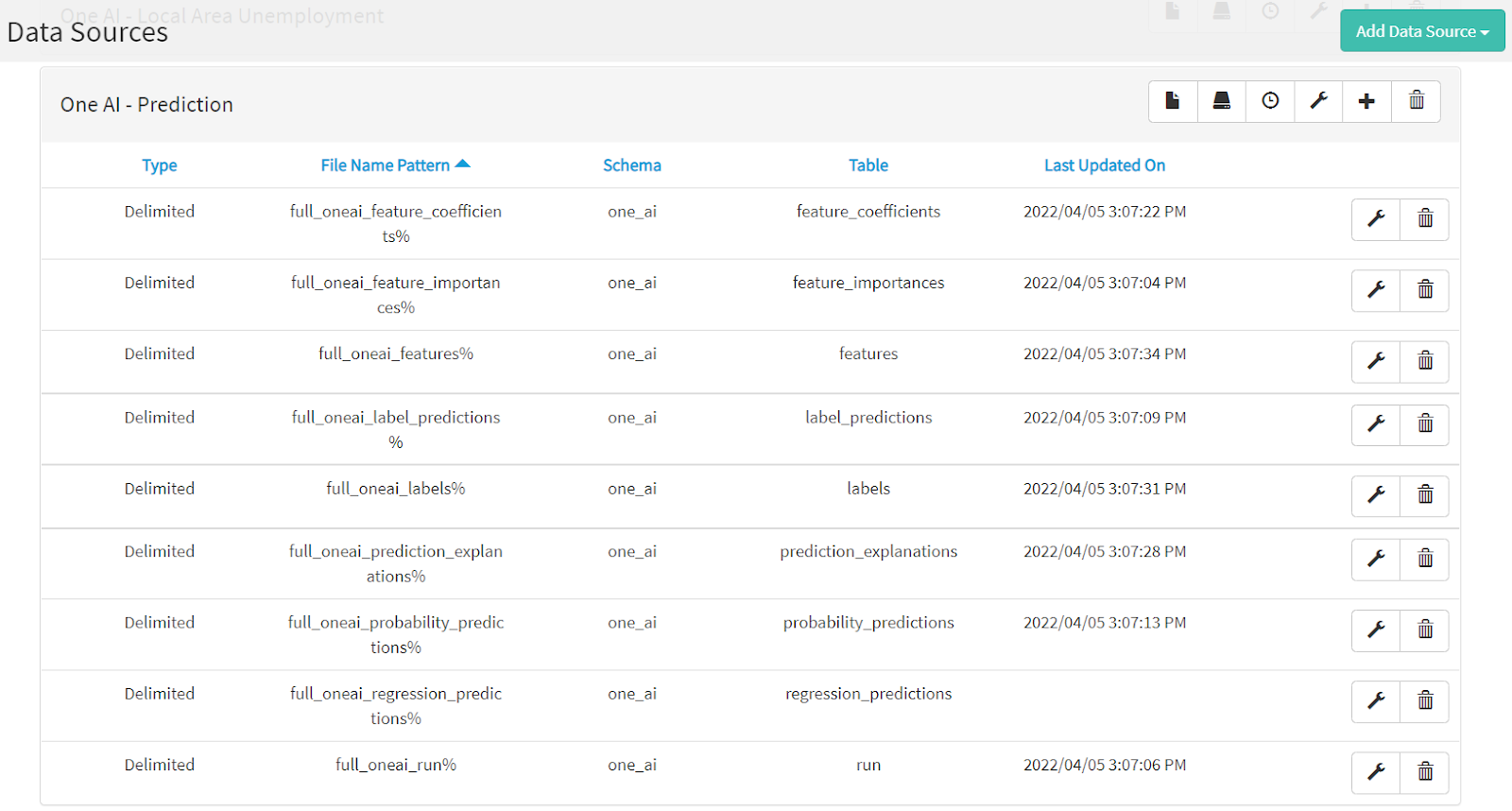 This data will be loaded via a new set of data sources. The new section is called "One AI - Prediction" and will be automatically created upon your first augmentation deployment after the release.