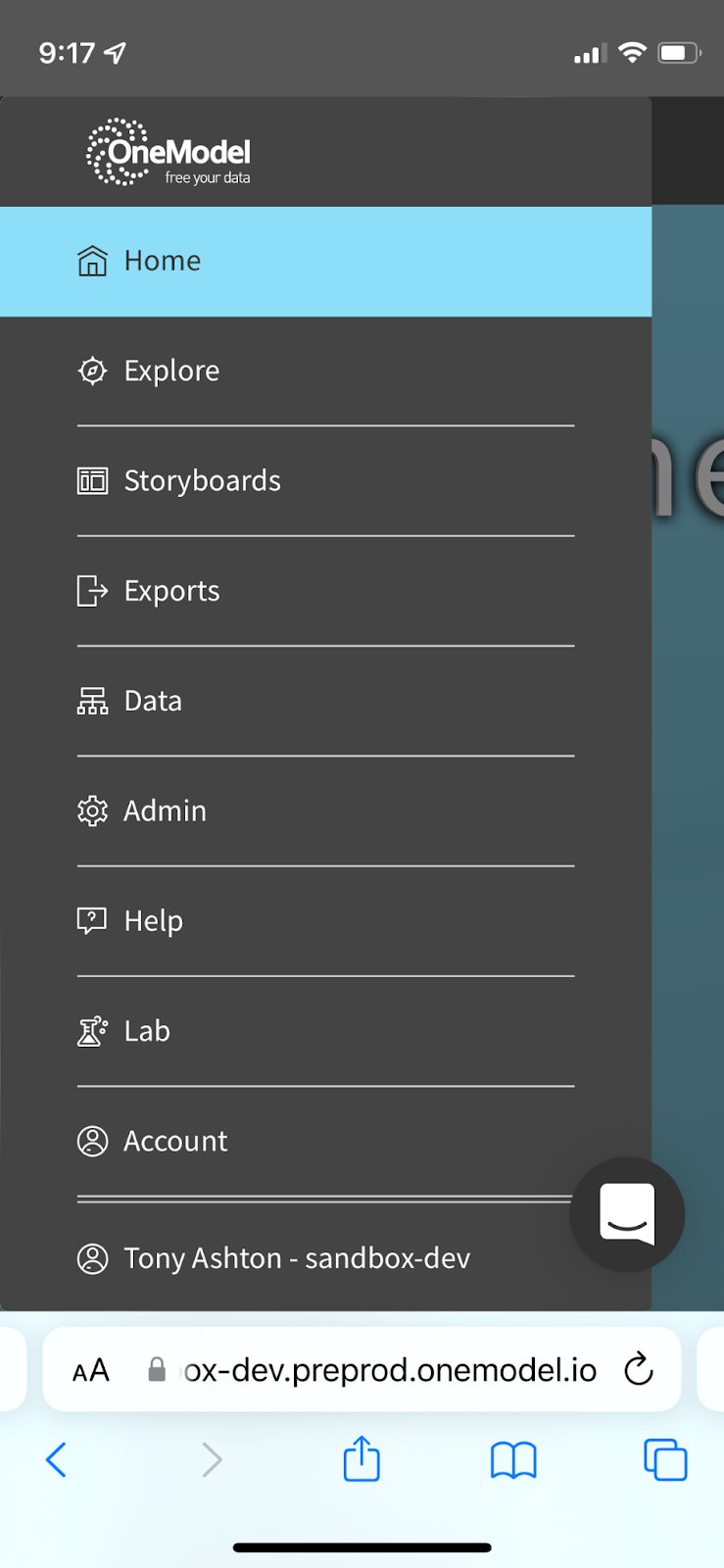Using One Model while moving around? We have improved the mobile experience when using One Model on a mobile device. This is most apparent when you open One Model in a mobile browser on a phone sized screen where you will now see a mobile friendly version of the navigation menu. More mobile improvements coming in the future, most notably an improved filtering experience (ref 11314).