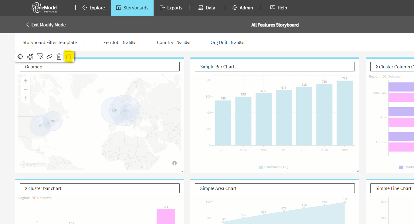 As we mentioned in the last product release notes, we have been working on an update to the underlying platform One Model uses for charting within Storyboards. We are in the final stages of developing the new capability, but if you would like to start playing around with the new charting connect with our Customer Success team and they can help enable this for a test user/role so you can see how it works with your existing Storyboards.