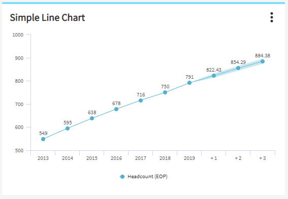 Forecasting is now included with the new charting capability. One notable change we have made is to the display of the forecast periods. This was previously fairly tricky in that we were trying to match the naming convention of the particular time dimension being used in the chart, so we have simplified this by now showing the number of forecast periods e.g. as +1, +2, +3 etc. This also more clearly shows the forecast timeline in the chart.