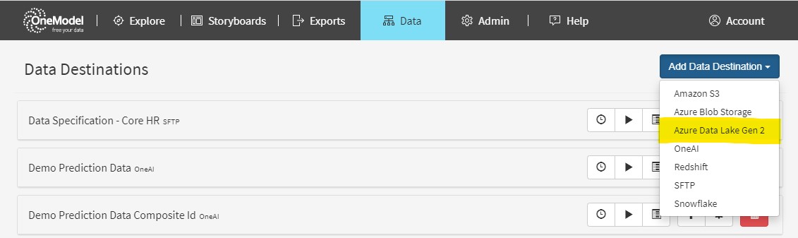 Introducing a new Data Destination - Azure Data Lake Storage Gen 2. You may recall that we recently added a new Data Destination for Azure Blog Storage and in this release it is now possible to send data from One Model to the Data Lake Storage Gen 2 storage in your Azure instance. For configuration details, please refer to our guide to Configure an Azure Data Destination (ref 9101)