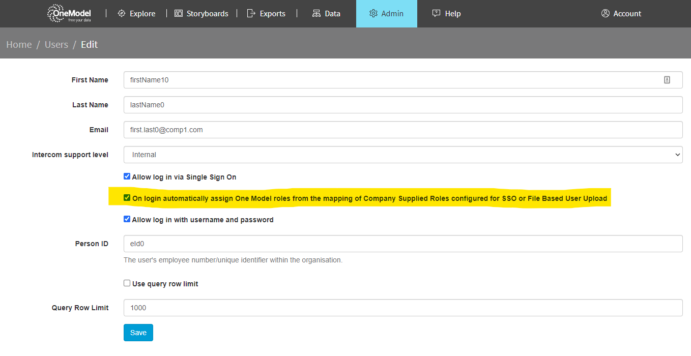to: On login automatically assign One Model roles from the mapping of Company Supplied Roles configured for SSO or File Based User Upload