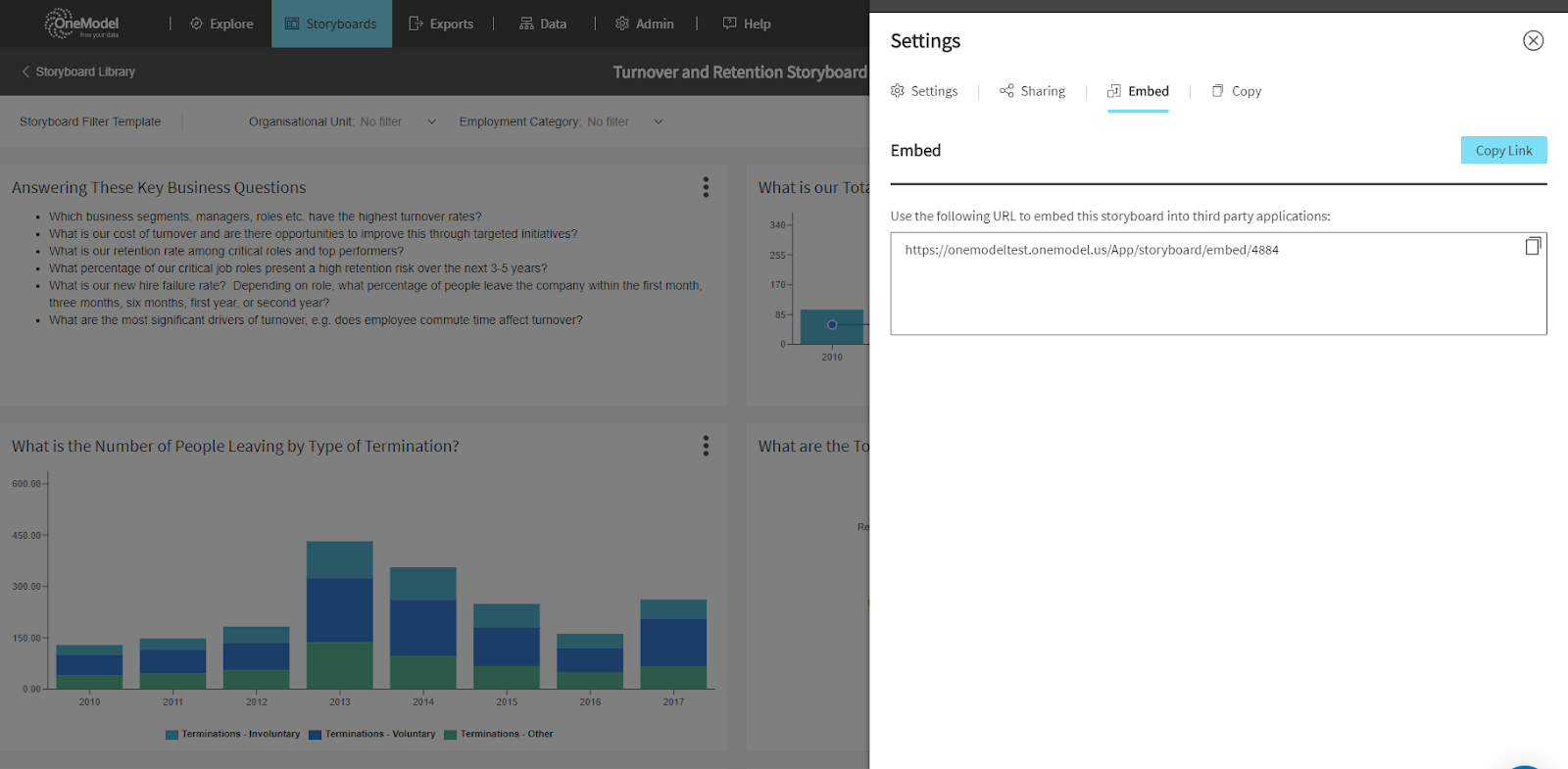 In the initial delivery of the new User Experience we focused on all of the core user capabilities and one of the last features to fully replace the functionality of the traditional Dashboards is embedding. In this release we have added the ability for customers to embed Storyboards or the entire One Model application into another site/portal etc. The existing administrative settings for setting up embedding in the company Admin screen all carry over, but the embedding links are new, so if you have Dashboards embedded you will have to update your embedding links when adopting the new UI. (ref 4316)