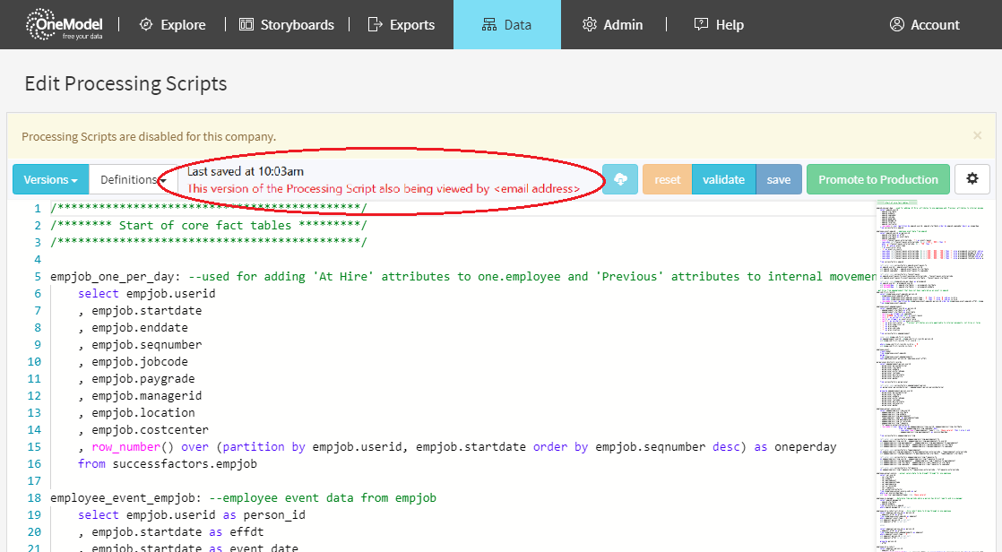 In this release we delivered a new feature within the Data Pipeline Processing editor that shows whether another user has the same processing script open to alert users so that they can avoid any issues with version control. (ref 3174)