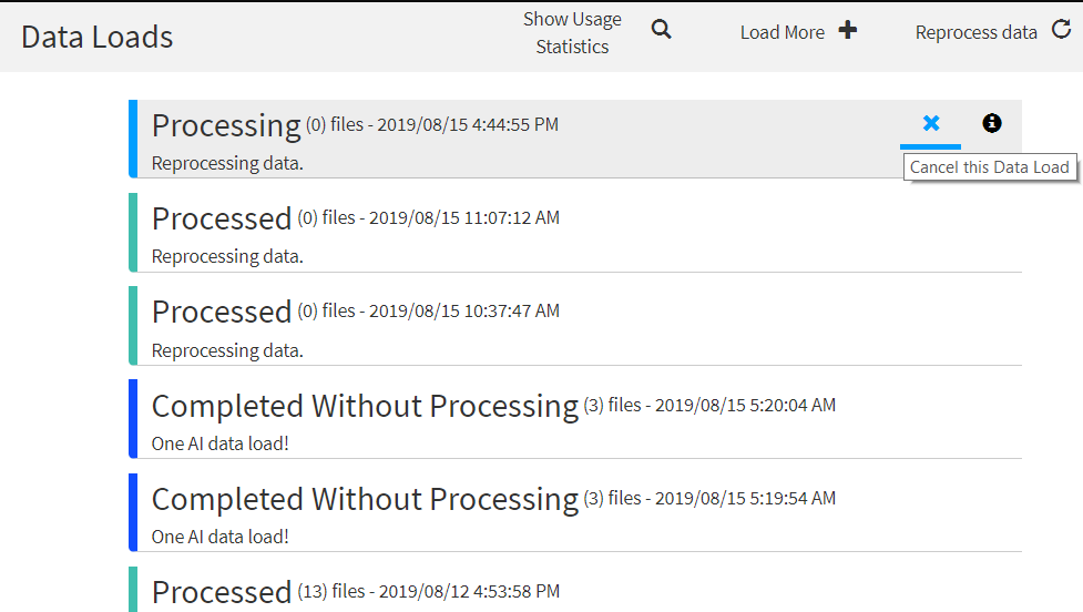 Allow users to cancel data loads in the Data Loads screen that are in the Cache Warming, Custom SQL, or Model Processing steps. (ref 2400)