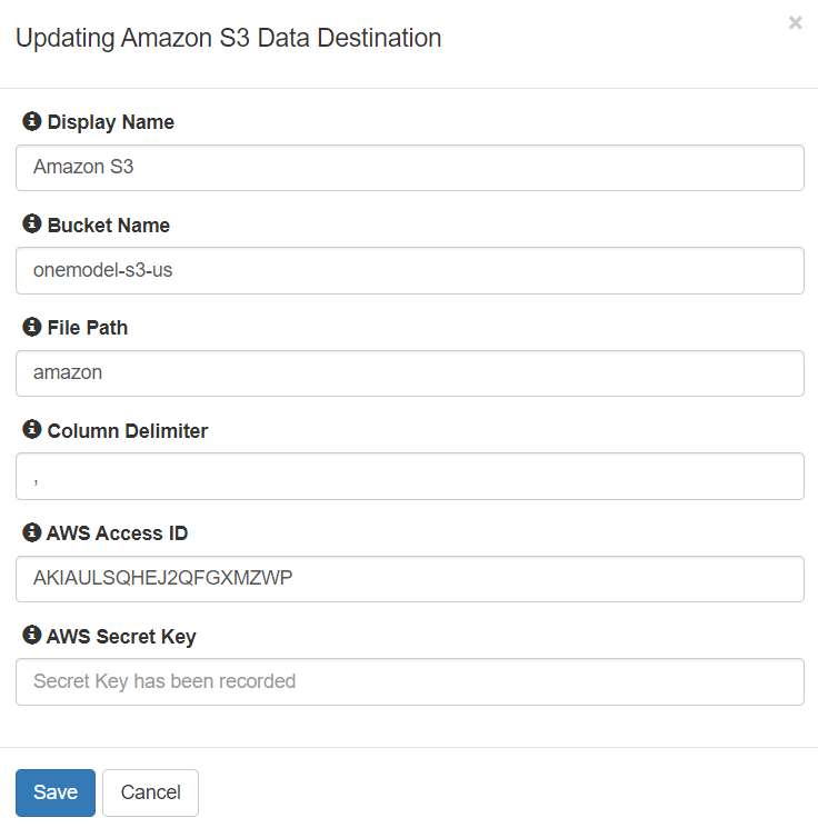 Customers that require specific column delimiters for downstream integrations can now configure the delimiters for One Model Data Destination exports. This can support text between one and three characters. The "," (comma) remains the default delimiter for One Model Data Destination exports. (2666)